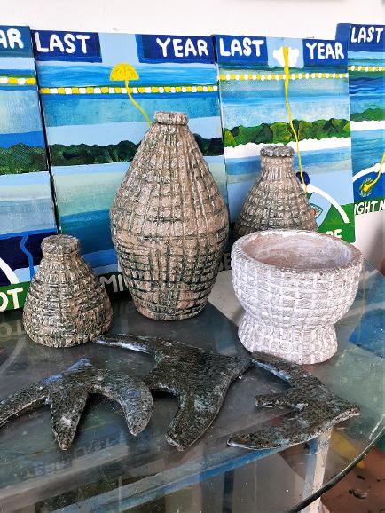 Some new developments have been made to all the paintings on the wall except for the eURUPAs. Some brand new horticultural developments are shown amongst the old ceramic works that are getting ready for their final firing, well most of them anyway.